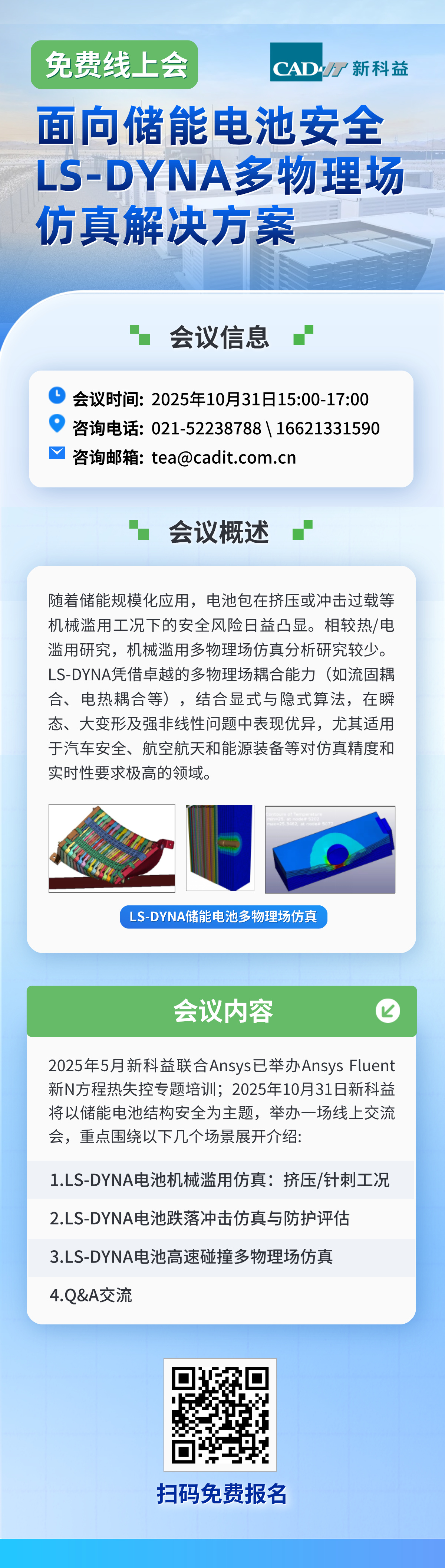免费线上会|面向储能电池安全:LS-DYNA多物理场仿真解决方案