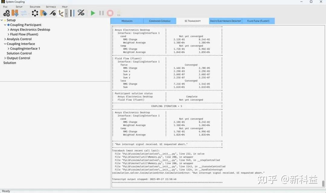 数据交互逻辑:System Coupling 通过 “SimTime” 控制计算时序,每完成 Fluent设定迭代步数(如10步,时间步长1e-5s),自动将电导率、温度传递至 Maxwell;Maxwell 基于新参数更新洛伦兹力与损耗,反传至 Fluent,形成闭环耦合,彻底摆脱传统手动数据传递瓶颈。