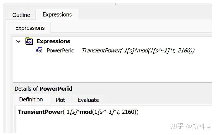 2.创建一个名为PowerPeriod的表达式,其内容为:TransientPower(1[s] * mod(1[s^-1] * t, 2160))此处模函数用于计算两个数的余数,从而实现循环重复。