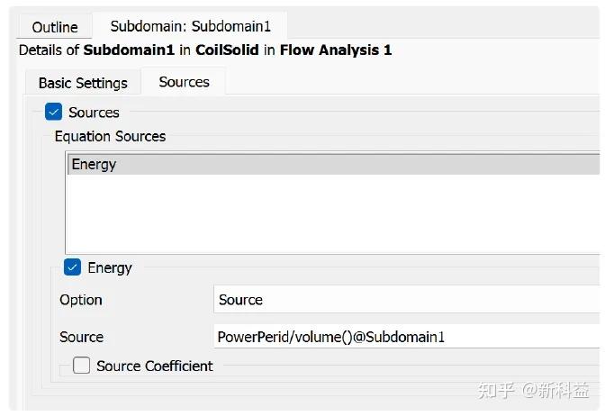 3.在固体区域中新建一个subdomain1,用于设置功率密度,采用表达式形式将W转成W/m3,表达式如下: