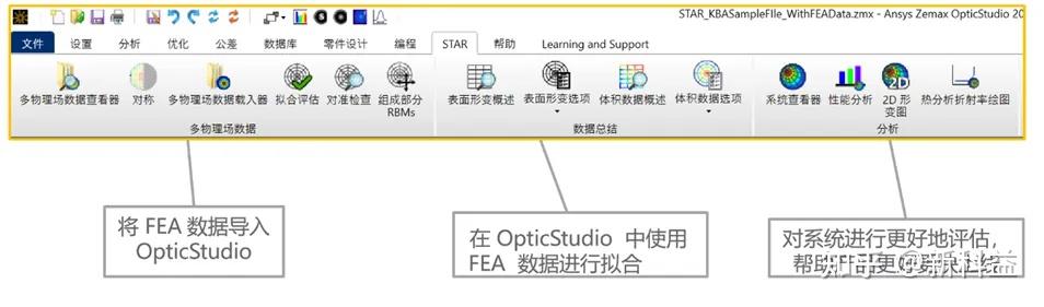 1)FEA数据导入与拟合:STAR模块能够接受来自任何FEA软件(如Ansys Mechanical)的以制表符分隔的数据文件。它采用先进的数字拟合算法,将FEA数据(如表面变形、温度分布)与光学模型中的表面对应起来,拟合精度高,残差误差小。