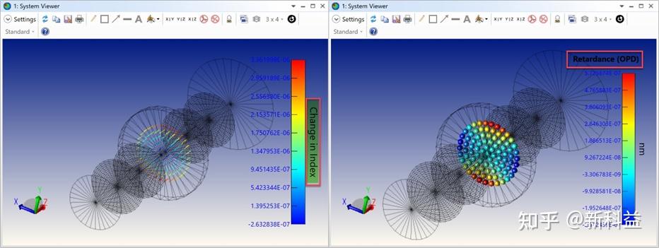前往 STAR模块分析系统查看器,用于检查镜头延迟(波前穿过光学元件时的累积延迟)或叠加在光线足迹区域内镜头上的索引变化数据。