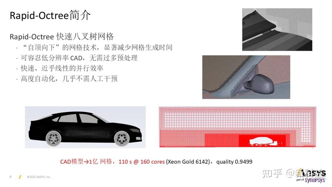 ‐ Fluent全新升级的Rapid-Octree 快速八叉树网格技术以其几何容忍度高、生成速度快、自动化程度高、并行效率高等特点,已成为外气动仿真中重要的网格生成手段之一