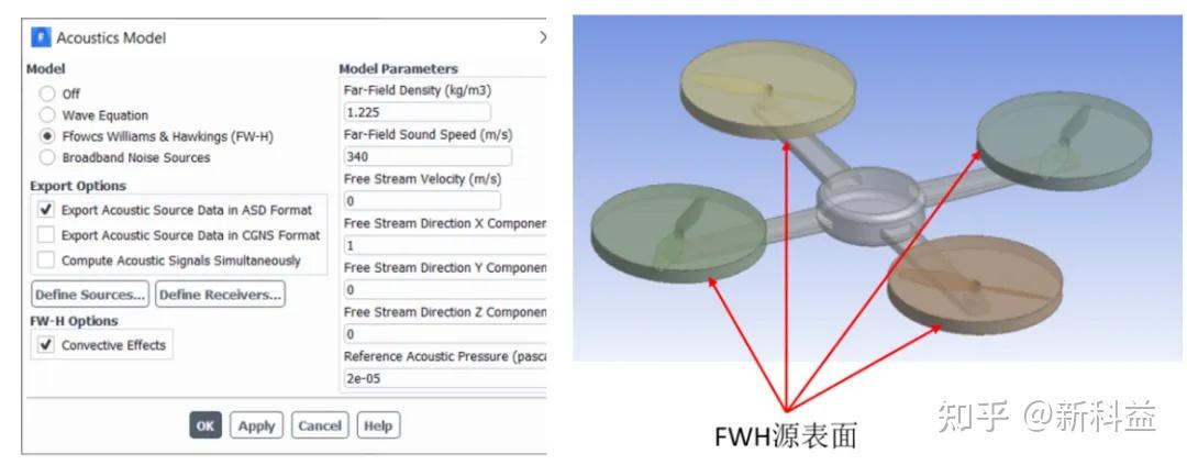 流场基于瞬态CFD仿真求解而噪声的传播基于声波传播公式进行解耦后单独计算,Fluent提供基于FW-H声波传播模型的类推分析方法