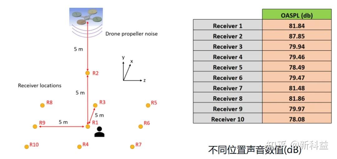 7、声学接收器位置:接收器位置位于无人机中心正下方5m和10m处,以及横向偏移10m的若干位置。采集数据超过5200个时间步,频率分辨率约为20Hz。