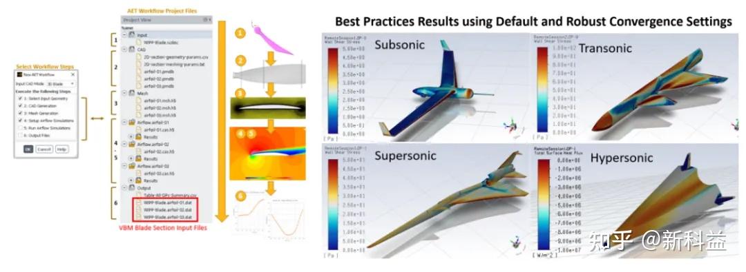 3.3 Fluent Aero Workflow外气动仿真模板:该部分是ANSYS开发的专为航空外气动模拟设计的工作区模块,主要应用于航空航天领域,支持从亚音速到高超音速的飞行条件参数化计算。特别适用于分析飞行器在不同迎角、马赫数、高度等参数下的气动性能,同时还支持壁面热边界条件。