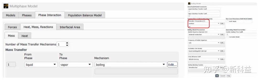 相间传质、传热机理设置:液体沸点为43℃