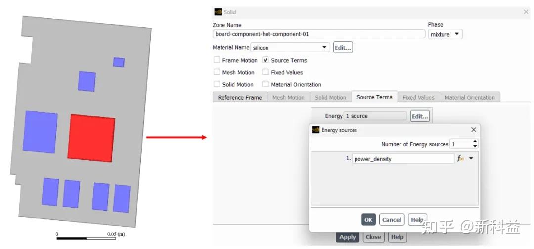 - PCB区域根据前述设置自动设置材料和热源