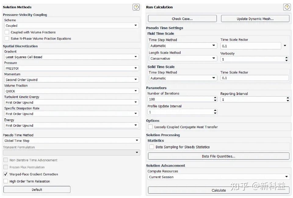 -计算方法与时间步设置:初始计算时可以一阶迎风格式保证数值计算稳定性,时间步系数建议不超过 0.1