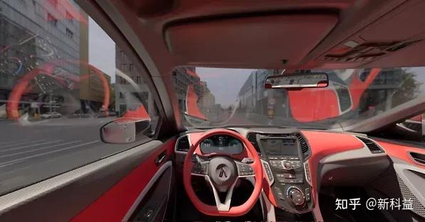 Ansys Speos仿真——日光照射下的汽车内饰。100Grays。现已证实,选择红色皮革和灰色哑光金属材质,可改变驾驶员的视野