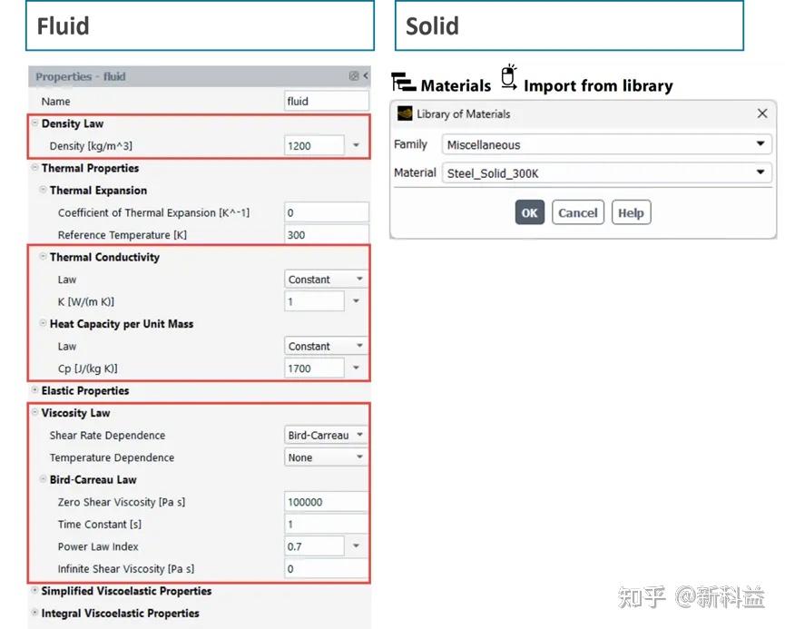 非等温介质-材料物性参数定义,粘度模型以及热属性相关信息